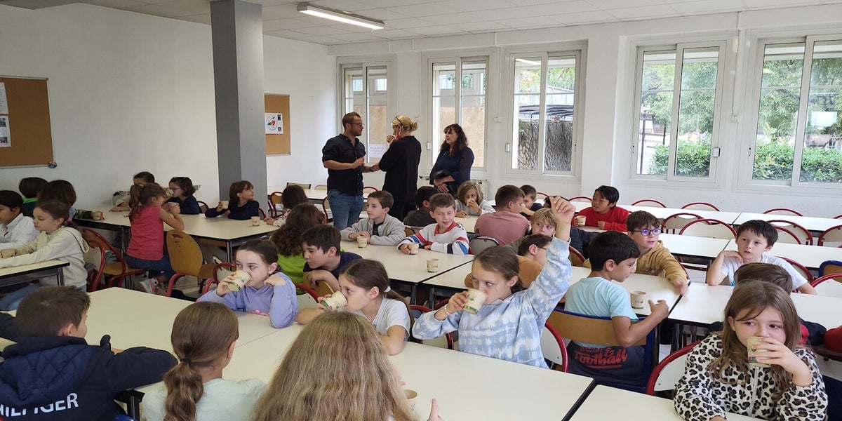 A l’école, dans les classes, les élèves ont pu déguster divers chocolats et thés, préparer de la salade fruits ou même de la compote. Ils ont également goûté du jus d’orange frais, additionné d’ingrédients dont les enfants ont peu l’habitude : ananas, carotte, gingembre..