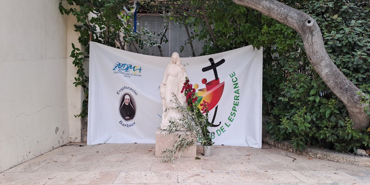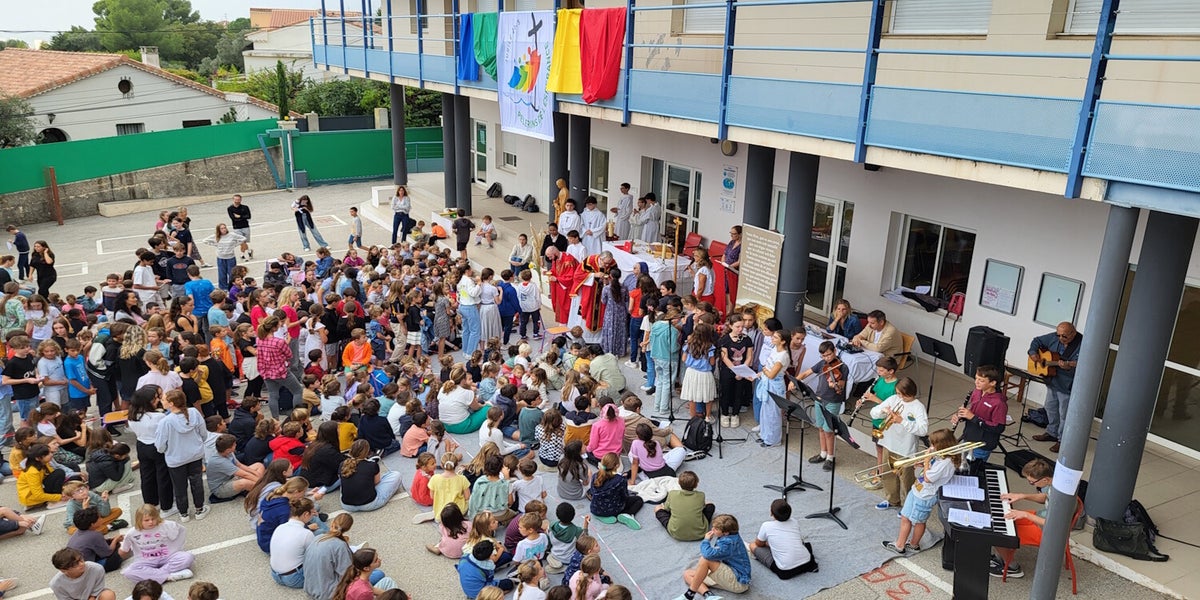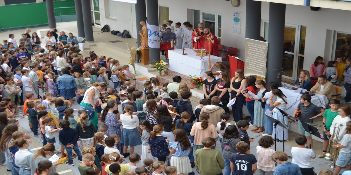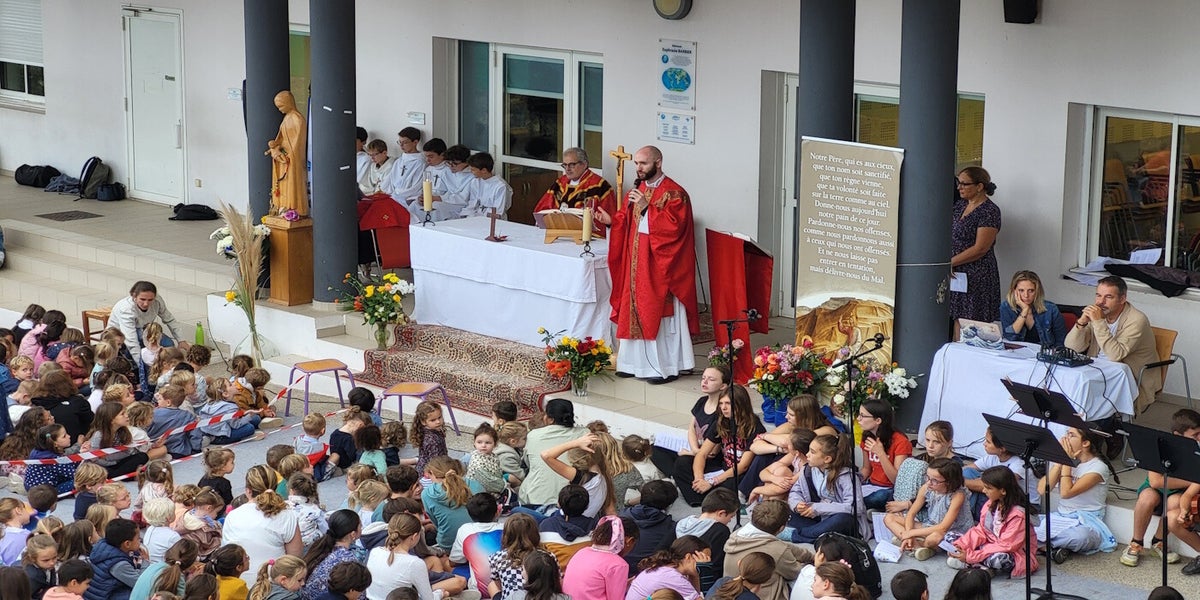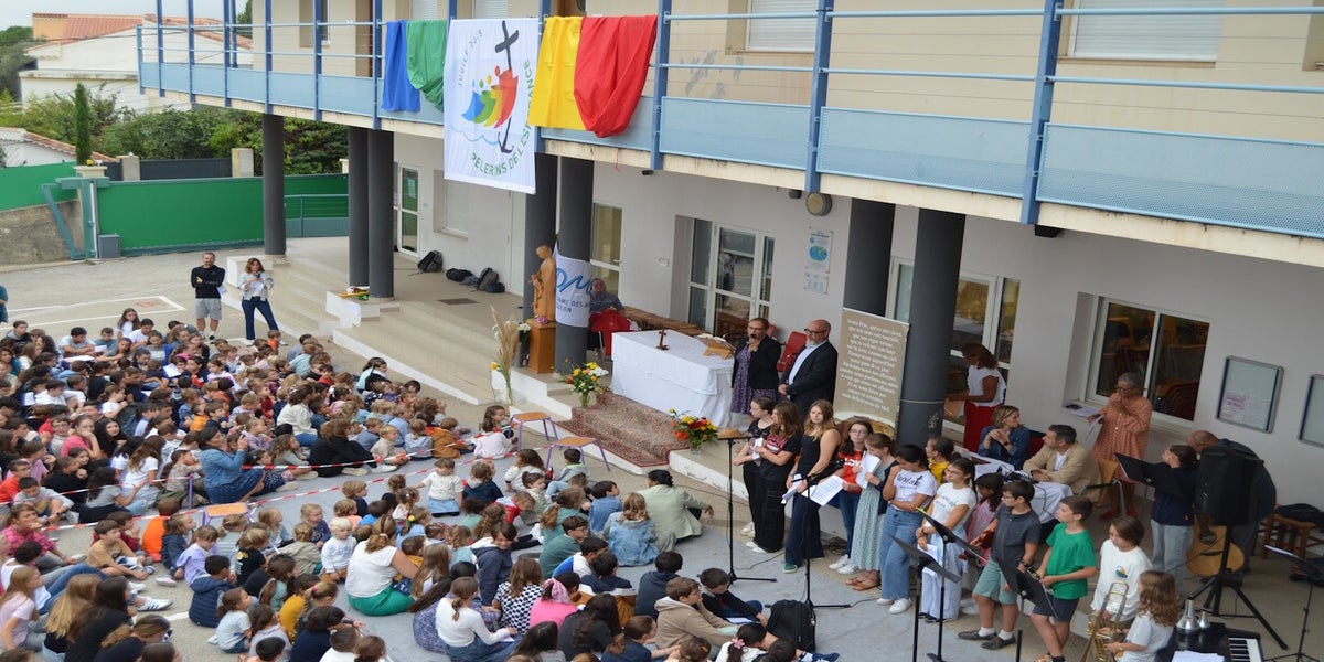 Cette belle journée festive a commencé par une grande messe qui rassemblait petits et grands dans la cour du bâtiment Euphrasie Barbier et sous une nouvelle bannière : Celle de l’entrée en Jubilé proclamé par le Pape François pour l’année 2025 « Pèlerins de l’Espérance ». Nous étions accompagnés des Pères Jérôme DERNONCOURT et Kevin CASSIDY de la Paroisse de l’Immaculée Conception de la Loubière.